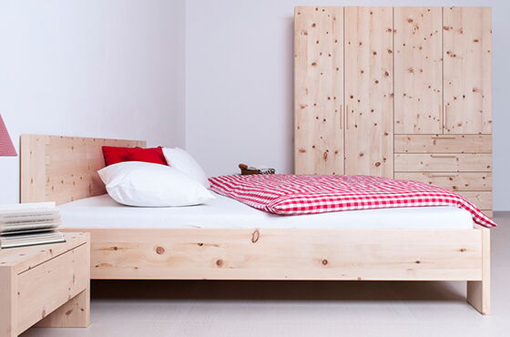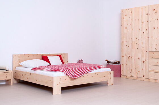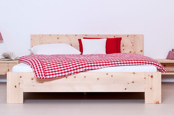 Das Massivholzbett FANES FA38 wird metallfrei gefertigt und weist eine hohe Stabilität auf. Das Bett ist in der Holzart Zirbe und Fichte erhältlich.