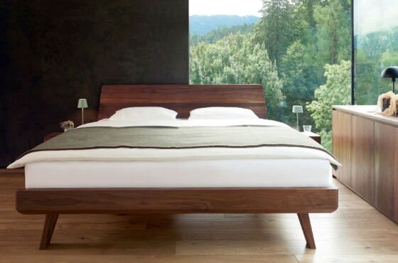 Elegant, leicht, harmonisch. Die Linie Elba mit sanften, abgerundeten Ecken fügt sich schwebend in den Raum ein. Ganz schön praktisch: die seitlich angebrachten Nachtkästchen mit sichtgeschütztem Ablagefach.