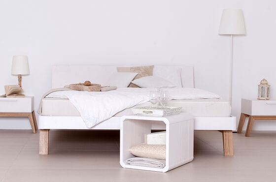 Nachtkästchen mit Beinen für Massivholzbett CORTINA.