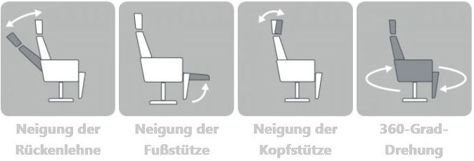 Relaxsessel mit eleganter Sperrholzschale und verstellbarer Rückenlehne, Kopfstütze und Fußstütze.