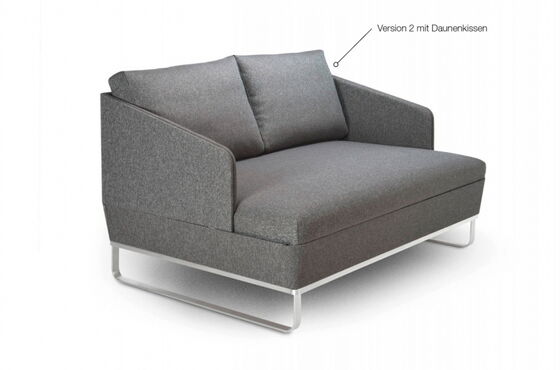 Das Schlafsofa DUETTO-DELUXE (Doppelbett) entlehnt dem DELUXE die filigrane Formensprache, ist aber deutlich kompakter. Ein elegantes, rundum gestaltetes Sofa, dass sich auch in der Mitte eines Raumes wohlfühlt. Zur Auswahl stehen drei verschiedene Kissen-Ausführungen.