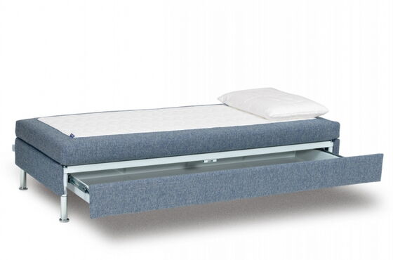Das Schlafsofa SINGOLO wurde als Einzelbett konzipiert und verfügt über einen ausziehbaren Metalbettkasten im Format 10x70x176cm mit großem Stauraum für Bettbezug und Kopfkissen.